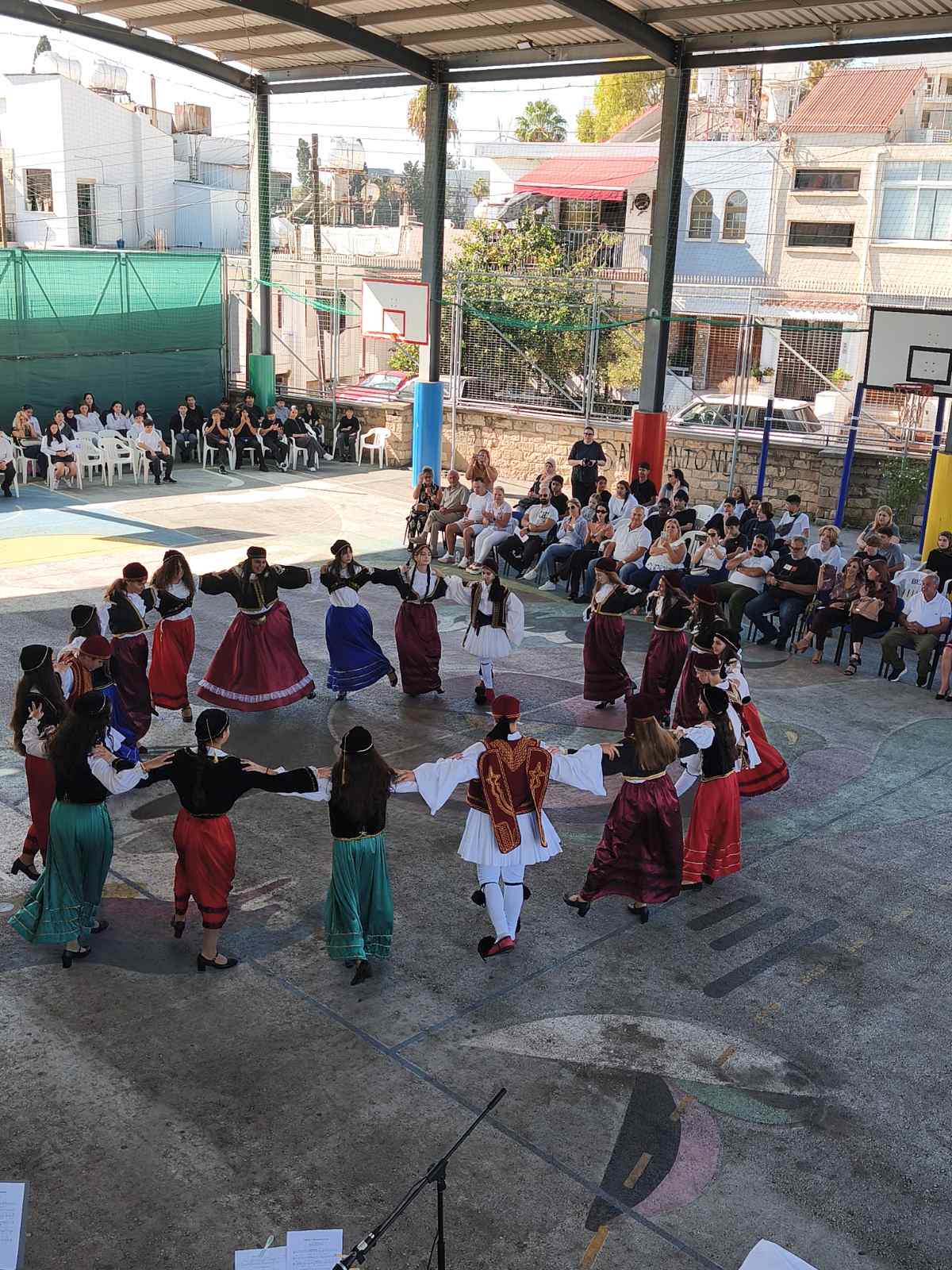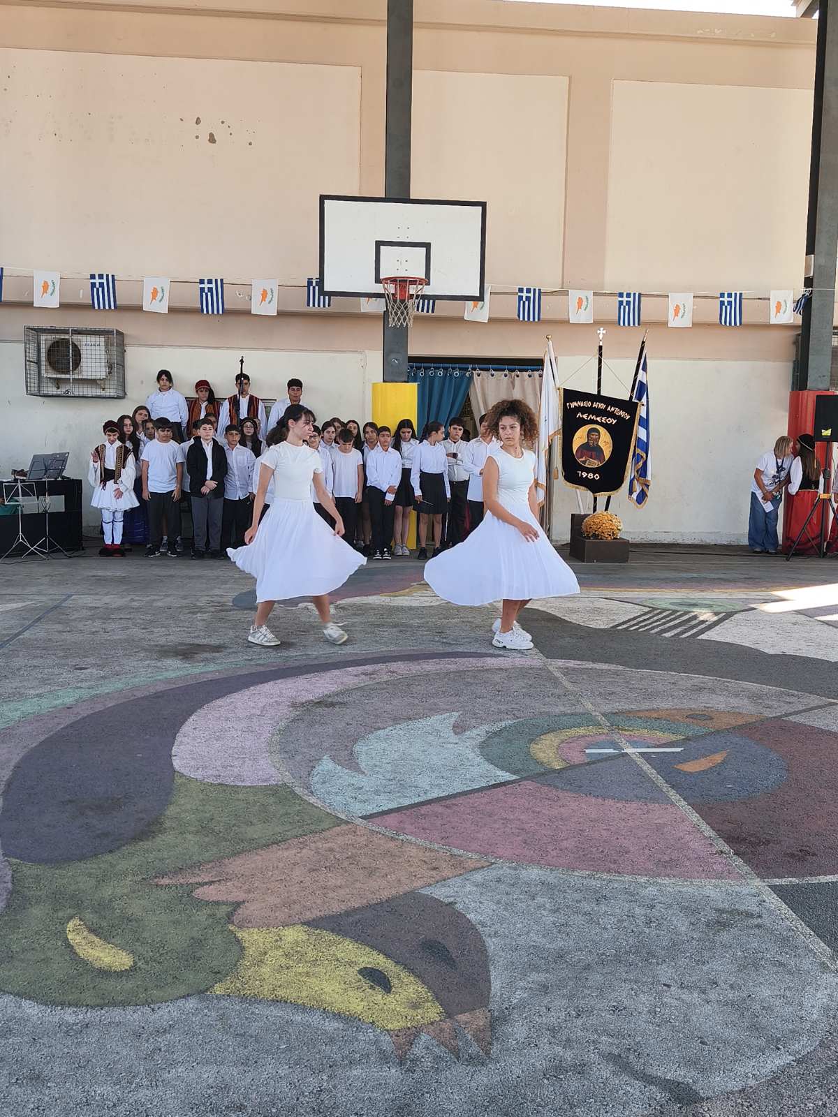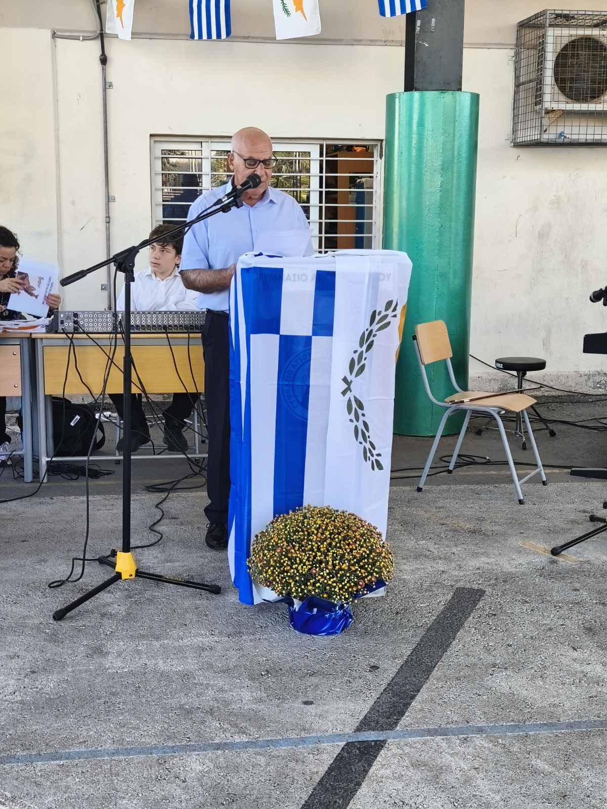 Η Διευθύντρια του Σχολείου παρέδωσε μετά από σύντομη προσφώνηση, το Λάβαρο και τις Σημαίες στους Σημαιοφόρους του σχολείου οι οποίοι στη συνέχεια παρέλασαν μπροστά από τους μαθητές, καθηγητές και γονείς που παρευρίσκονταν στην εκδήλωση.