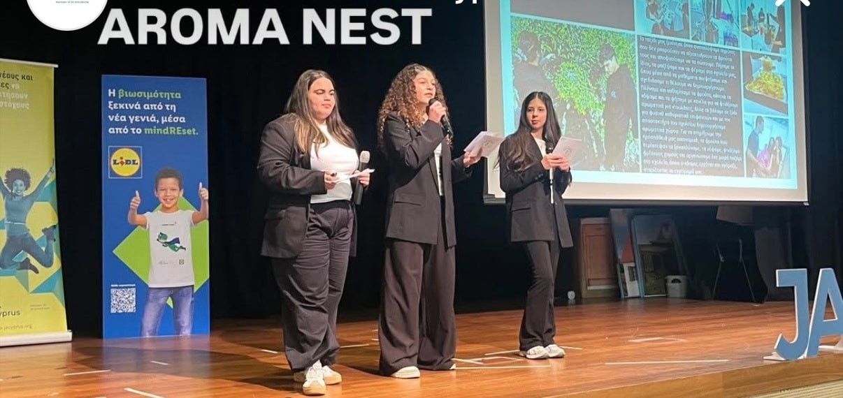 Με ενθουσιασμό, δημιουργικότητα και ουσιαστική ομαδική δουλειά, οι μαθήτριες της ομάδας AromaNest του σχολείου μας παρουσίασαν το project τους στον διαγωνισμό MindReset του Junior Achievement Cyprus φτάνοντας μέχρι την τελική φάση και διαγράφοντας μια εξαιρετική πορεία. Στάθηκαν στη σκηνή με αυτοπεποίθηση εκπροσωπώντας το σχολείο μας με σοβαρότητα και ήθος.